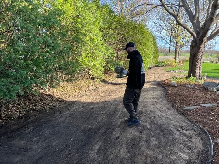 Répartition uniforme des semences à l’aide d’un épandeur granulaire pour garantir une couverture homogène.